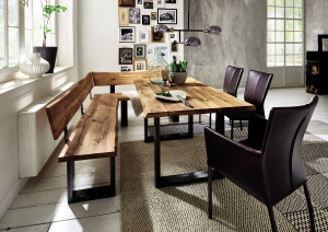 Eckbank-Esstisch-Massivholz-Edelstahlkufen