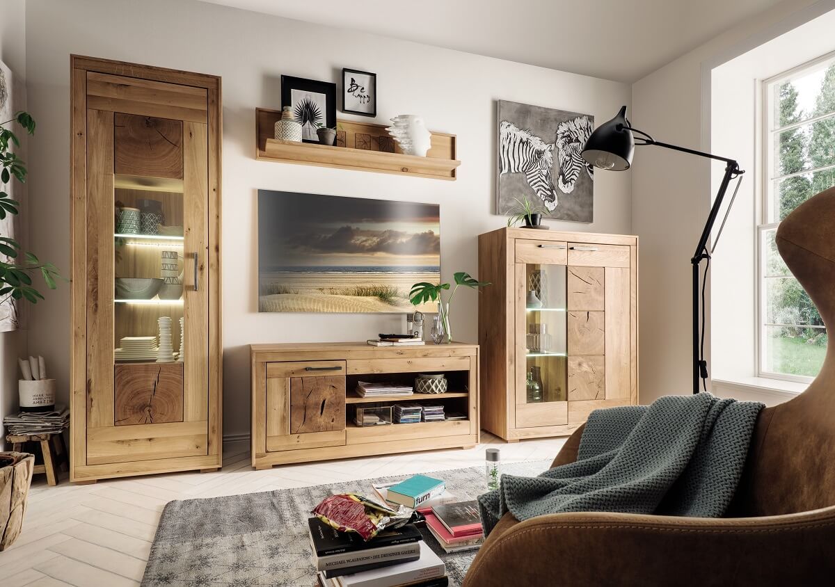 TV-Schrank, Highboard, Vitrinenschrank und Couchtisch – natürlich aus Massivholz