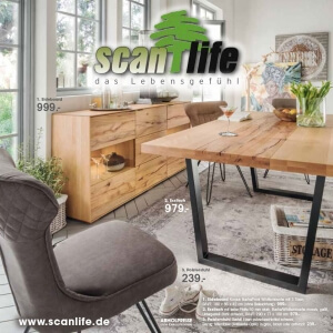 Aktueller Möbelkatalog des Möbelhauses Scan Life in Kolbermoor (bei Rosenheim) mit Massivholzmöbeln, Polstermöbeln, Wohnaccessoires