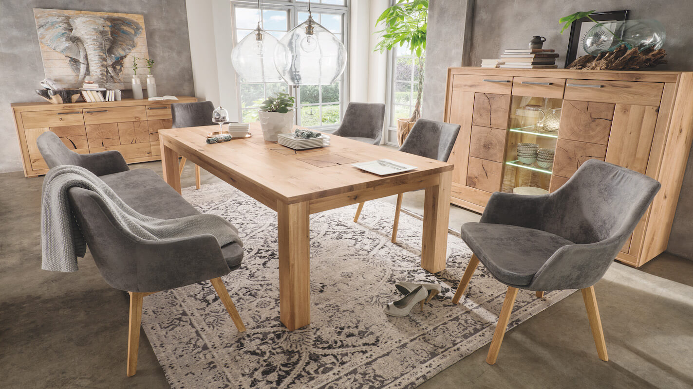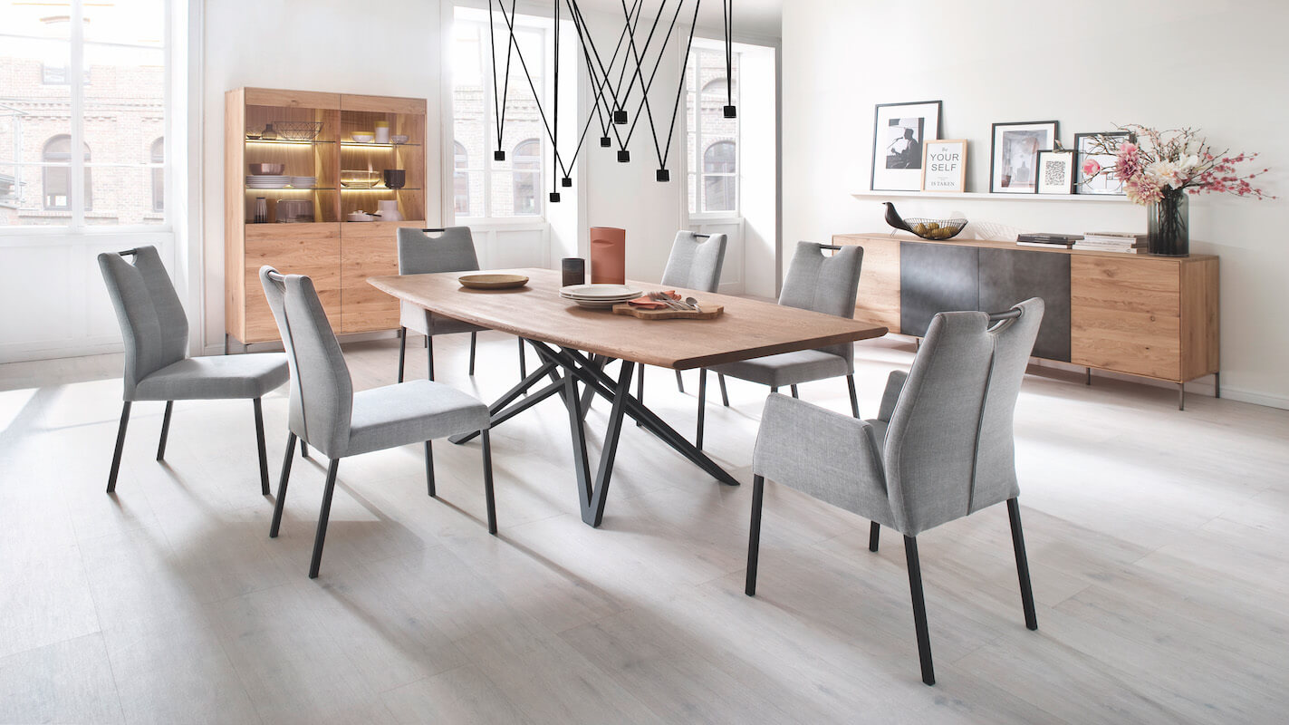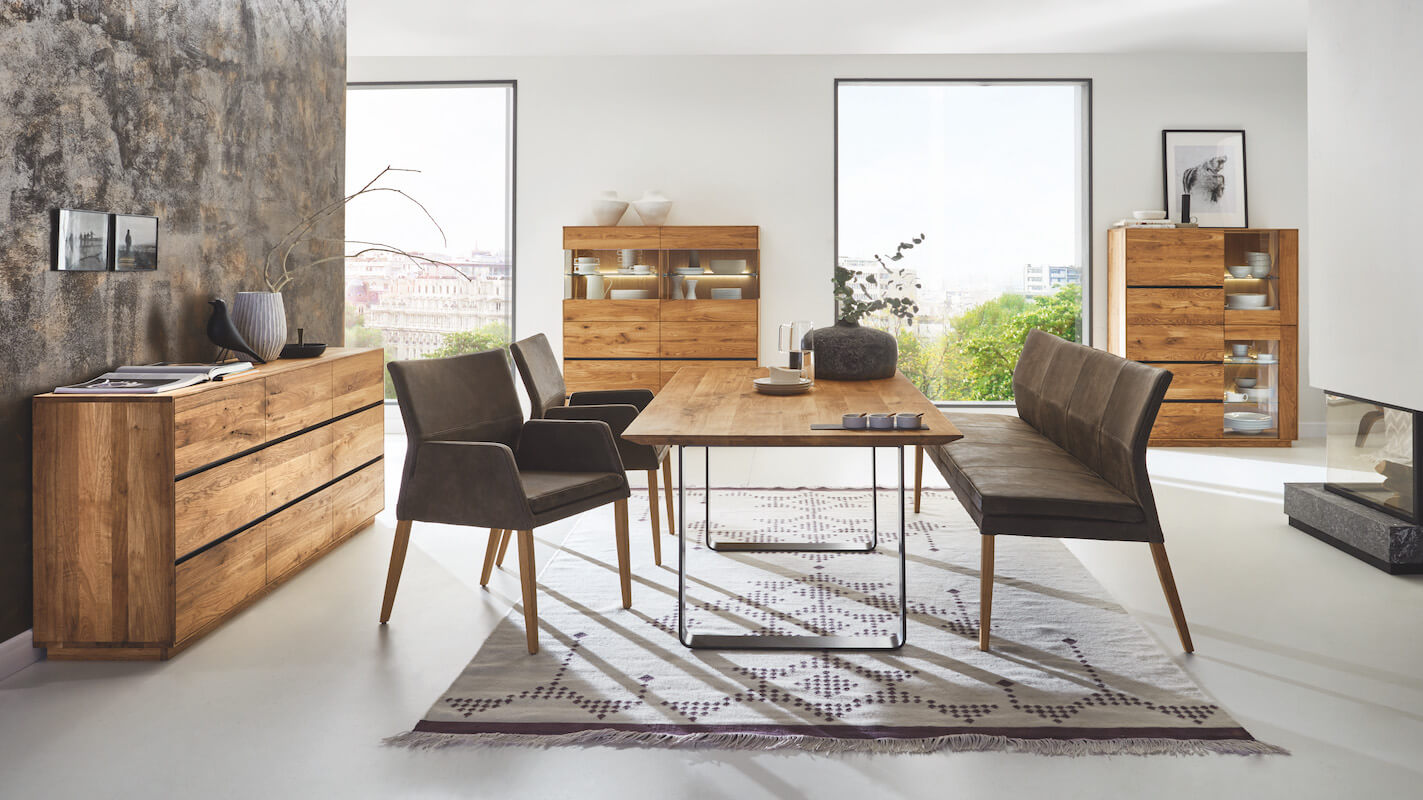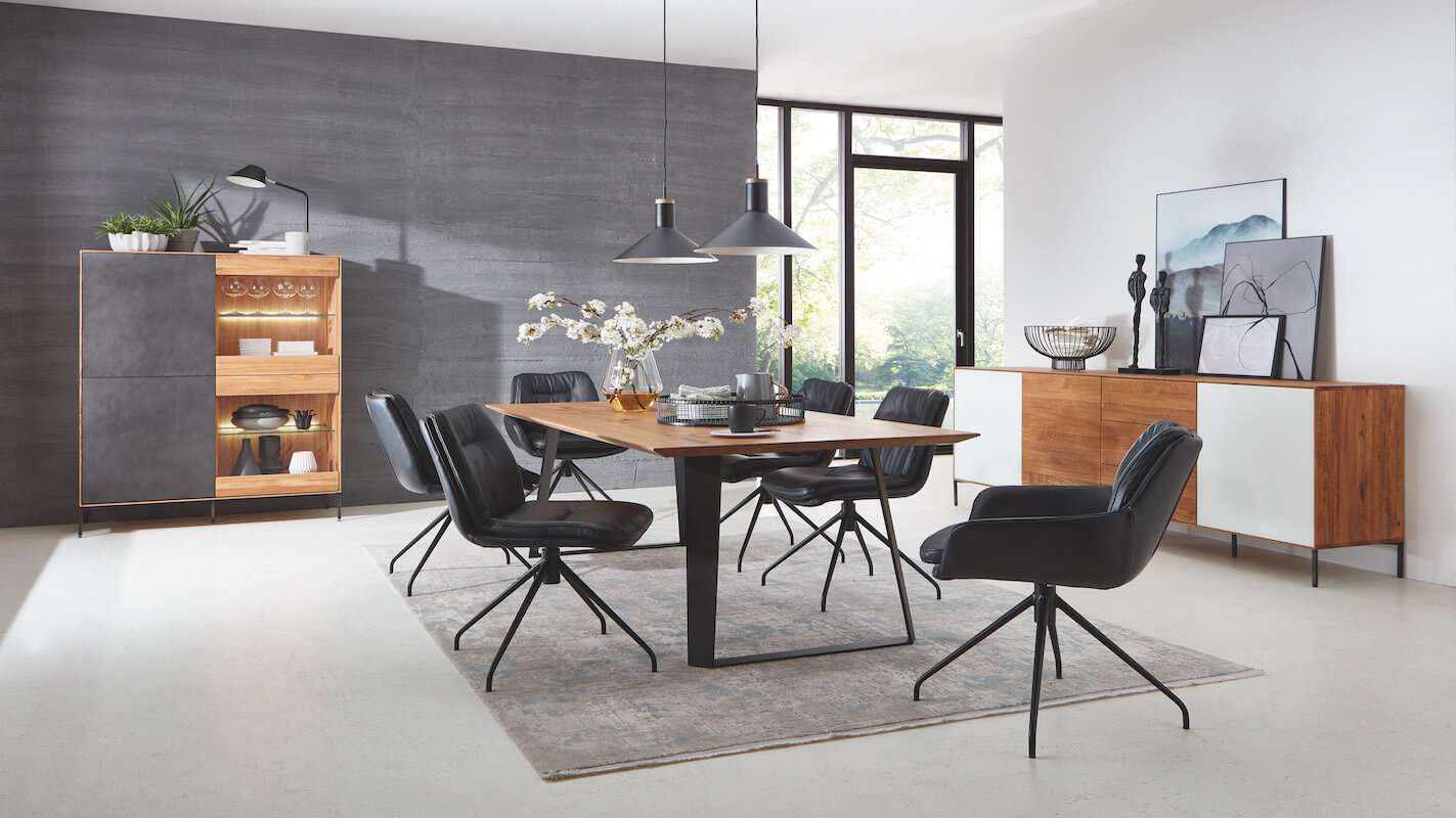 Das Esszimmer ist der Ort wo Familie und Freunde zusammenkommen. Hier ist neben Möbeln in schönem Design auch Funktionalität gefragt. Ausziehbare Esstische, System-Eckbänke, Polsterstühle, Sitzbänke, Highboard-Vitrinen, Buffets und vieles mehr. Der Kauf von Möbeln für Ihr Esszimmer wird bei uns einfach gemacht, denn zahlreiche Konfigurationsvarianten ermöglichen Ihnen, Ihre Möbel individuell zusammenzustellen.
