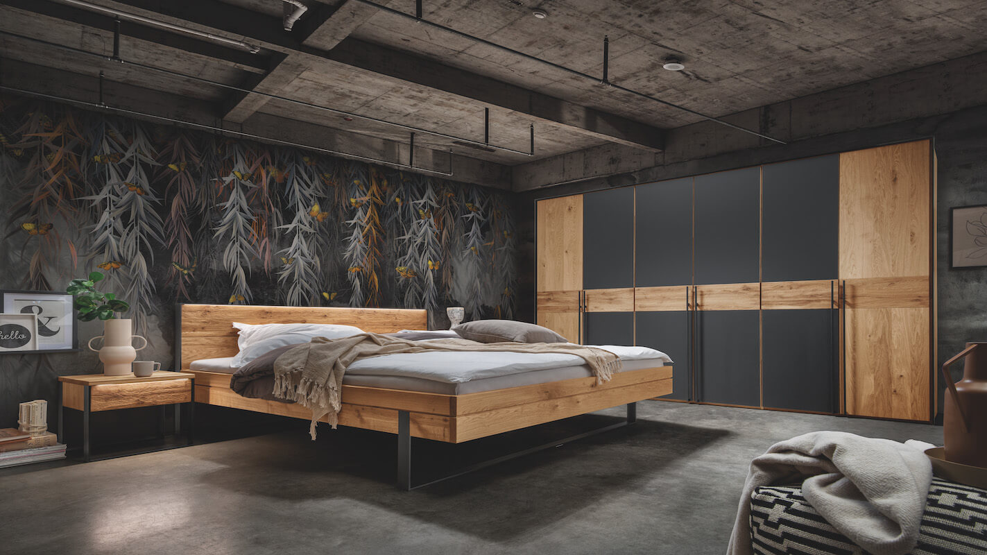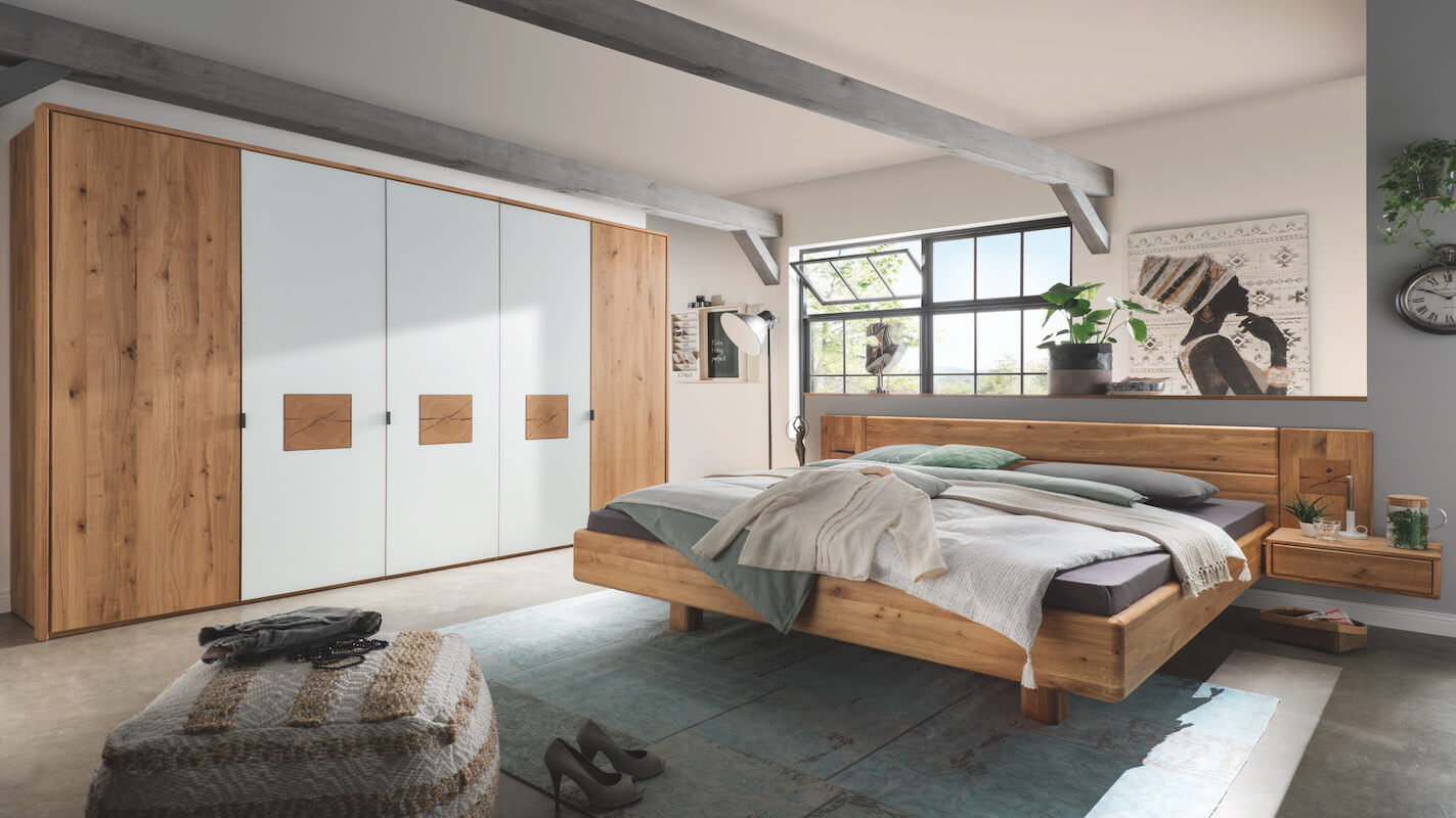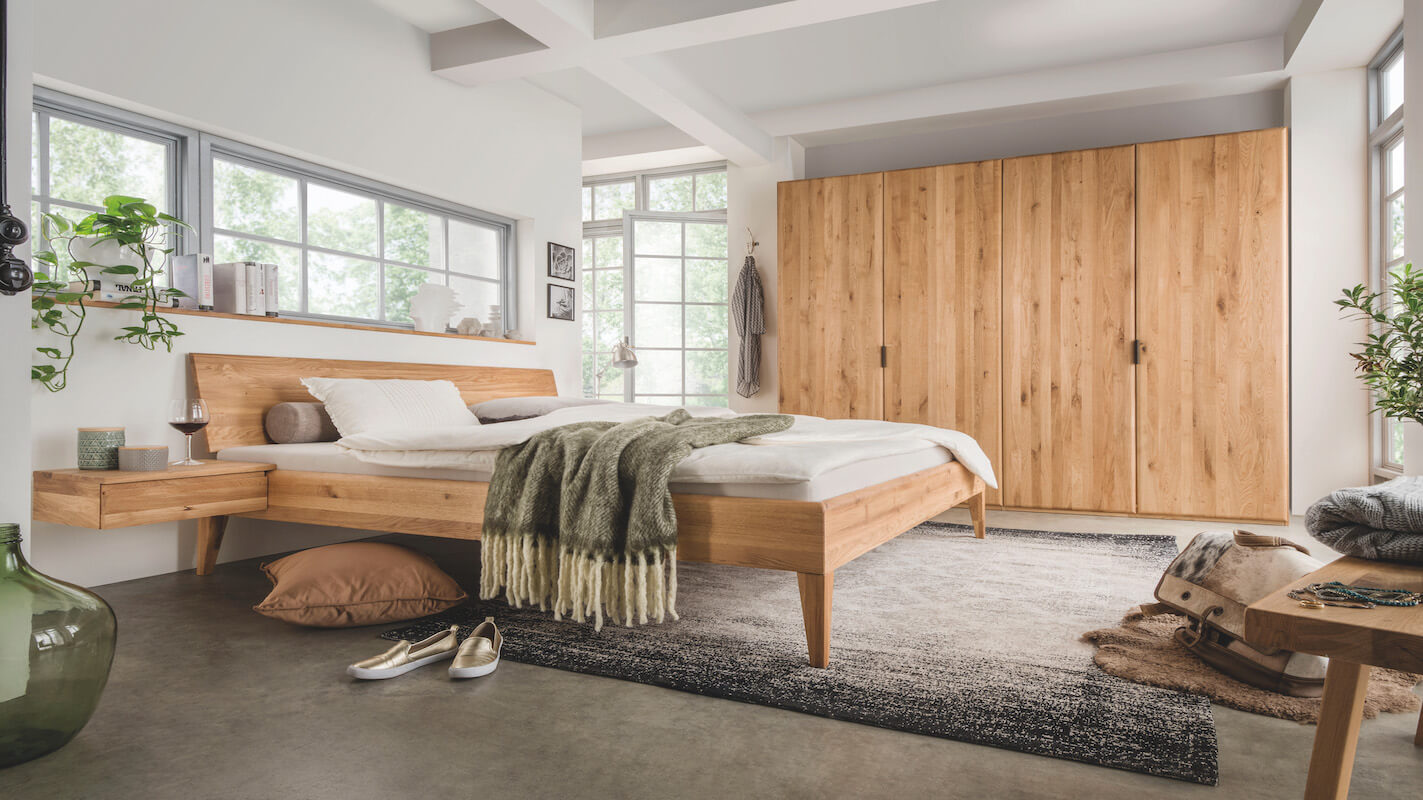 Ihr Schlafzimmer soll ein Ort von Ruhe & Geborgenheit sein. Wie Sie es einrichten liegt bei Ihnen. Ein Balkenbett, ein Bett in Komforthöhe (~49 Zentimeter) mit Schubkästen und viel Stauraum oder doch ein klassisches Doppelbett? Auch beim Kleiderschrank steht viel zur Auswahl: unterschiedliche Holzarten, Schrankfronten, Griffe, Breiten & Höhen. Gerne beraten wir Sie was sich für Ihren Raum am besten eignet.