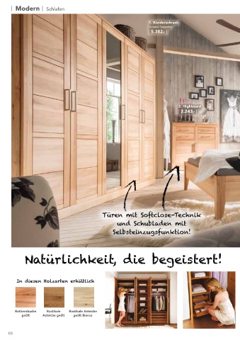 Natürlichkeit, die begeistert! 3. Doppelbett in Komforthöhe, mit niedrigem Stollenfußteil, inkl. Lichtleiste, ohne Rahmen und Auflagen, Lgfl.: 180 x 200 cm: | 2.091.- | ohne Beleuchtung: | 1.591.- |
