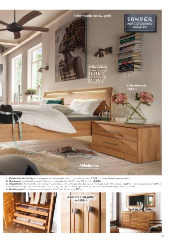 Natürlichkeit, die begeistert! 3. Doppelbett in Komforthöhe, mit niedrigem Stollenfußteil, inkl. Lichtleiste, ohne Rahmen und Auflagen, Lgfl.: 180 x 200 cm: | 2.091.- | ohne Beleuchtung: | 1.591.- |