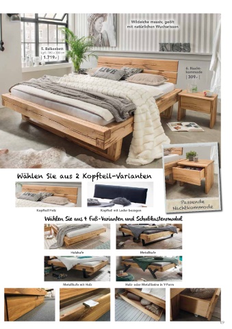 Fichte geölt Fichte Weiß lasiert Wildeiche geölt Wählen Sie aus 4 Fuß-Varianten und Schubkastenmodul