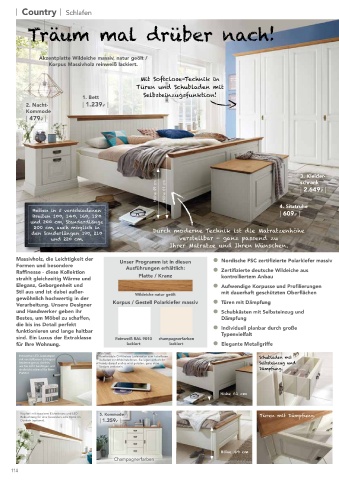 Massivholz, die Leichtigkeit der 1. Bett ohne Rahmen und Auflagen, Lgfl.: 180 x 200 cm: | 1.239.- | 6. Kommode B/H/T: 109 x 180 x 44 cm: | 1.179.- |
