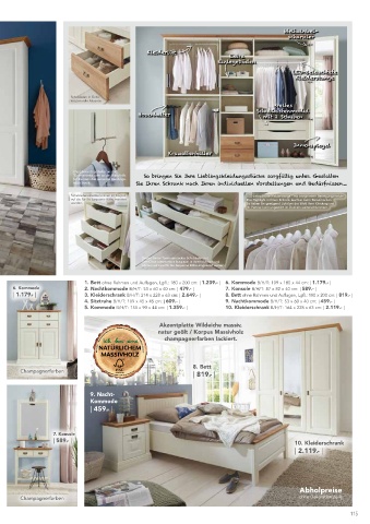 Ausführungen erhältlich: • | 1.179.- | 3. Kleiderschrank B/H/T: 214 x 228 x 63 cm: | 2.649.- | 8. Bett ohne Rahmen und Auflagen, Lgfl.: 100 x 200 cm: | 819.- |