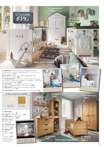 70 x 140 cm: | 359.- | 19. Kommode 21. Babybett