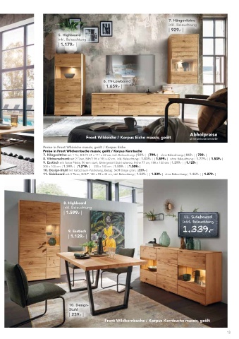 Preise in Front Wildeiche massiv, geölt / Korpus Eiche 9. Esstisch 1.339.-