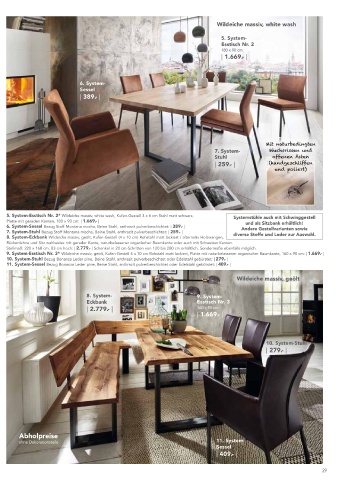 | 2.279.- | 5. System-Esstisch Nr. 2* Wildeiche massiv, white wash, Kufen-Gestell 3 x 6 cm Stahl matt schwarz, Systemstühle auch mit Schwinggestell