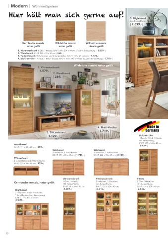 4. Multi-Vertiko Breite 180 cm: | 949.- | 12. Wandboard B/H/T: 114 x 20 x 20 cm: | 239.- |