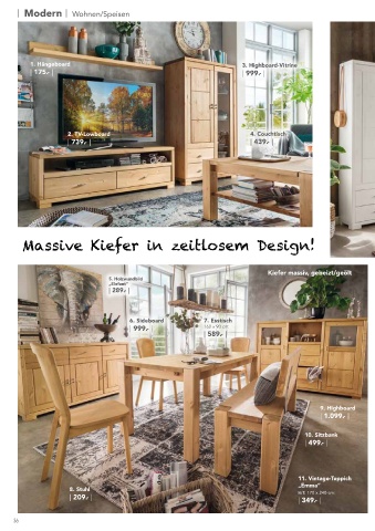 In diesen Holzarten erhältlich Wohn- / Speisezimmer-Programm in Kiefer massiv, weiß