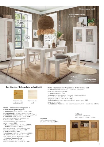 In diesen Holzarten erhältlich Wohn- / Speisezimmer-Programm in Kiefer massiv, weiß