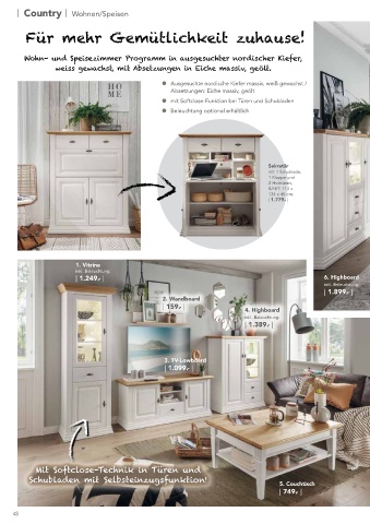 Wohn- und Speisezimmer Programm in ausgesuchter nordischer Kiefer,