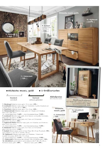 | 999.- | 11. Polsterstuhl in Bezug grau oder anthrazit, Füße in Wildeiche geölt: | 139.- |