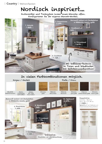 4. TV-Lowboard mit 1 Holztür, 10. Highboard* B/H/T: 132 x 154 x 48 cm: | 2.279.- | 15. Armlehnstuhl mit Holzsitz: | 329.- |
