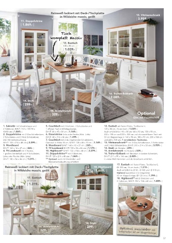 4. TV-Lowboard mit 1 Holztür, 10. Highboard* B/H/T: 132 x 154 x 48 cm: | 2.279.- | 15. Armlehnstuhl mit Holzsitz: | 329.- |