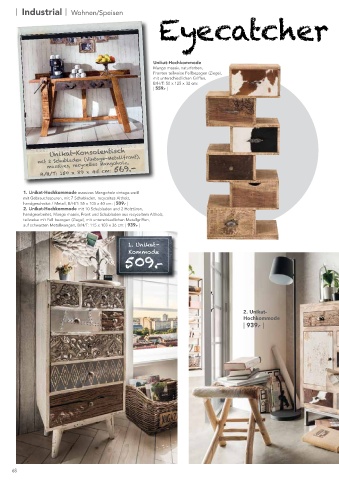 1 Holztür, massives, recyceltes mit unterschiedlichen Metallgriffen, B/H/T: 55 x 110 x 33 cm: | 609.- |