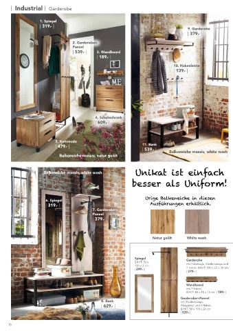 6. Spiegel 3. Wandboard mit 7 Haken, B/H/T: 83 x 15 x 15 cm: | 189.- | 12. Garderoben-Paneel mit Hutablage, Kleiderstange