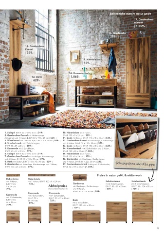 6. Spiegel 3. Wandboard mit 7 Haken, B/H/T: 83 x 15 x 15 cm: | 189.- | 12. Garderoben-Paneel mit Hutablage, Kleiderstange