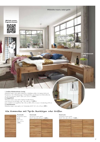 Wildeiche massiv, natur geölt, mit 1 Schublade, B/H/T: 57 x 43 x 39 cm: | 349.- |