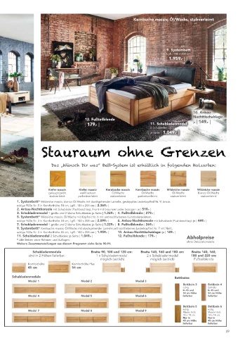in vielen Varianten 5. Systembett 7. Schubladenmodul 1 große und 2 kleine Schubladen: je Seite | 1.229.- | 8. Fußteilblende: | 269.- |