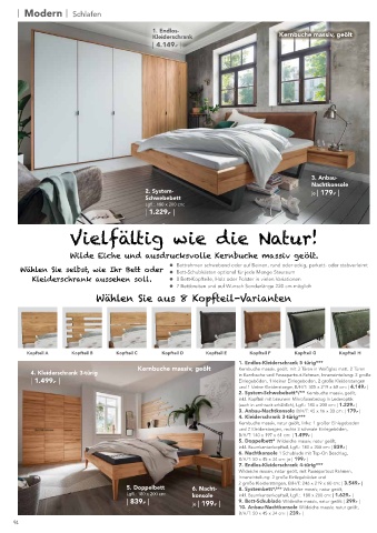 5. Doppelbett 6. Nacht- 8. Systembett*/** Wildeiche massiv, natur geölt, * Alle Betten ohne Rahmen und Auflagen.