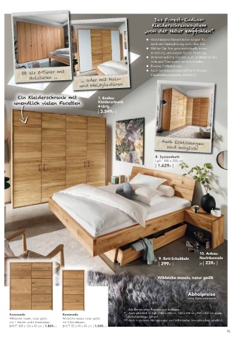 5. Doppelbett 6. Nacht- 8. Systembett*/** Wildeiche massiv, natur geölt, * Alle Betten ohne Rahmen und Auflagen.