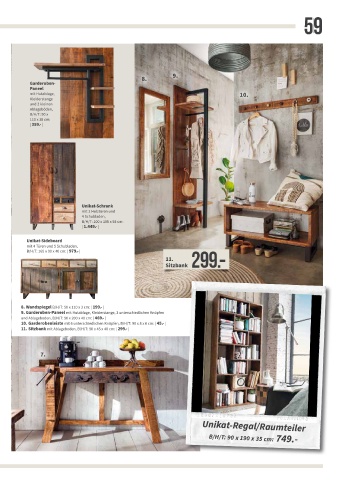 unterschiedlichen Griffen. 11. Sitzbank mit Ablageboden, B/H/T: 90 x 45 x 40 cm: | 299.- |