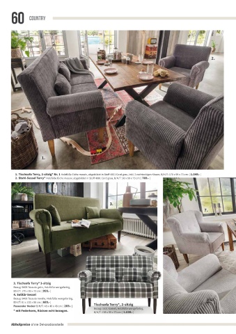 1. Tischsofa Terry, 3-sitzig* Nr. 1 Holzfüße Eiche massiv, abgebildet in Stoff 4801 Cord grau, inkl. 2 rechteckigen Kissen, B/H/T: 170 x 99 x 73 cm: | 1.049.- |