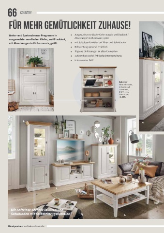 Wohn- und Speisezimmer Programm in • Ausgesuchte nordische Kiefer massiv, weiß lackiert / 2.