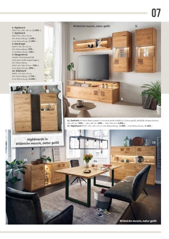 3. Wildeiche massiv, bianco geölt 6. Highboard Wildeiche massiv, natur geölt 9.